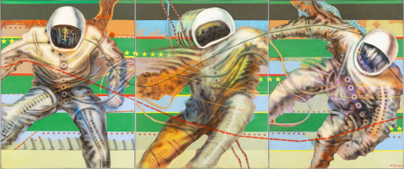 E korszakhoz köthető az 1968-as Asztronauták, amely a Magyar Nemzeti Galéria Jelenkori Gyűjteményének része, valamint a BTM Fővárosi Képtár/Kiscelli Múzeum gyűjteményében található Rugby (1968).