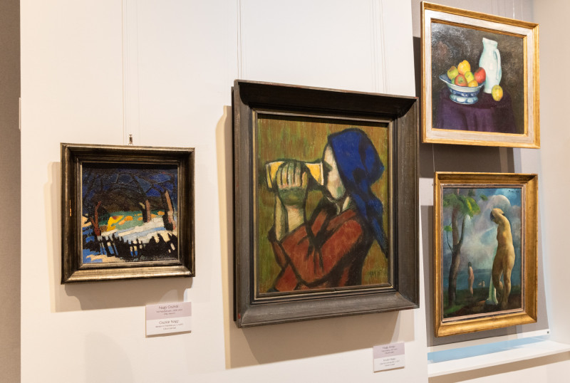 A nagybányai művészek között nemcsak a közismert alkotók kaptak helyet a kiállításon, mint az alapítók közé tartozó Iványi Grünwald Béla vagy a neósok közül Boromisza Tibor, Czigány Dezső, Perlrott-Csaba Vilmos, Ziffer Sándor, hanem olyan kevéssé ismert művészek is, mint Jándi Dávid, Pechán József vagy Korda Vince. Jándi Dávid újklasszicizmus jegyében született Akt asztaltársasággal / Akt szabadban (1925) című festménye Manet impresszionizmust elindító, Reggeli a szabadban képének újraértelmezése. A nagybányai iskolához tartozó, fiatalon, 1922-ben elhunyt vajdasági festőt, Pechán Józsefet mostanában kezdi felfedezni a magyar művészettörténet. Ezért a magyar Vadak hatását tükröző Haditanács (1908) című képe a kiállítás egyik unikumának számít. Korda Vince neve szorosan összefonódott a filmmel, világhírű fivére, a rendező Korda Sándor révén, olyannyira, hogy 1940-ben a Korda rendezte Bagdadi tolvaj díszleteiért Oscar-díjban is részesült. Pedig pályája indulásakor még festőnek készülve Iványi Grünwald Béla tanítványa volt Kecskeméten, de Nagybányán is többször megfordult. E korai időszakból való a most kiállított Két akt (1923) című alkotása.