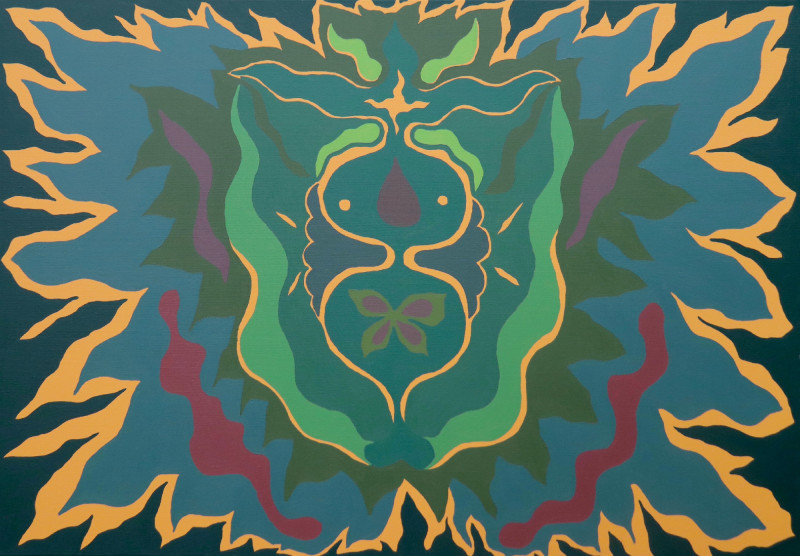 •Egymás mellett használt színeiddel alakítod ki a jellegzetes, gyakran vibráló felületeket. Organikus kompozícióidban a monokróm jellegű háttér és az előtér markánsan elkülönülnek egymástól. Mit jelent számodra ez a fajta kettősség?