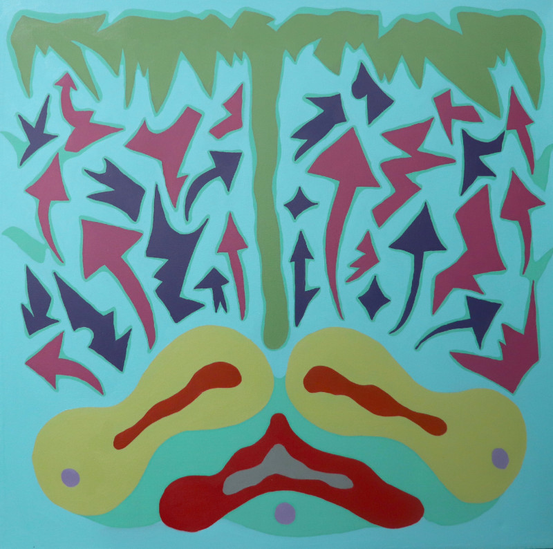 A gyermekrajzok rendkívül egyszerűek, azért választom őket, mert formailag nem akarok bonyolult alakzatokat használni. Színhatásaiban természetesen ehhez képest eltávolodom ettől, emelem a tétet, és komplex módon foglalkozom velük. Absztrakt képekként tekintek munkáimra, noha azoknak időnként asszociatív vagy figuratív jellegű olvasatuk is van. A gyermekrajzszerű alakzatoknál könnyed, gyors, lendületes, spontán motívumokat használok, amelyek törzsi rajzokra is emlékeztetnek. Leginkább az óceániai kultúrákból származó alakzatok, a perui Nazca-vonalak, illetve a népi motívumok inspirálnak. Emellett a Jankovics Marcell legkorábbi animációs filmjeiben látott képi világból indulok ki. Különböző nemzetek jellegzetes motívumai érdekelnek, de szándékosan nem ásom magam jelentéstartalmaik és szimbólumrendszerük legmélyére, hogy sajátomnak érezhessem és „konrádosítva” fessem meg őket. A vásznaimon feltűnő naiv formák ugyanakkor nagyon is megtervezettek, határozott vonalvezetésűek, amelyek folyamatosan alakulnak. Leginkább a körvonallal való játék foglalkoztat, hogy az miként definiálja át a formákat. Munkamódszerem alapján a vonalakból alakuló formák megfestési módja mindig a legszigorúbb, majd ezt kissé könnyedebb fázis követi.
