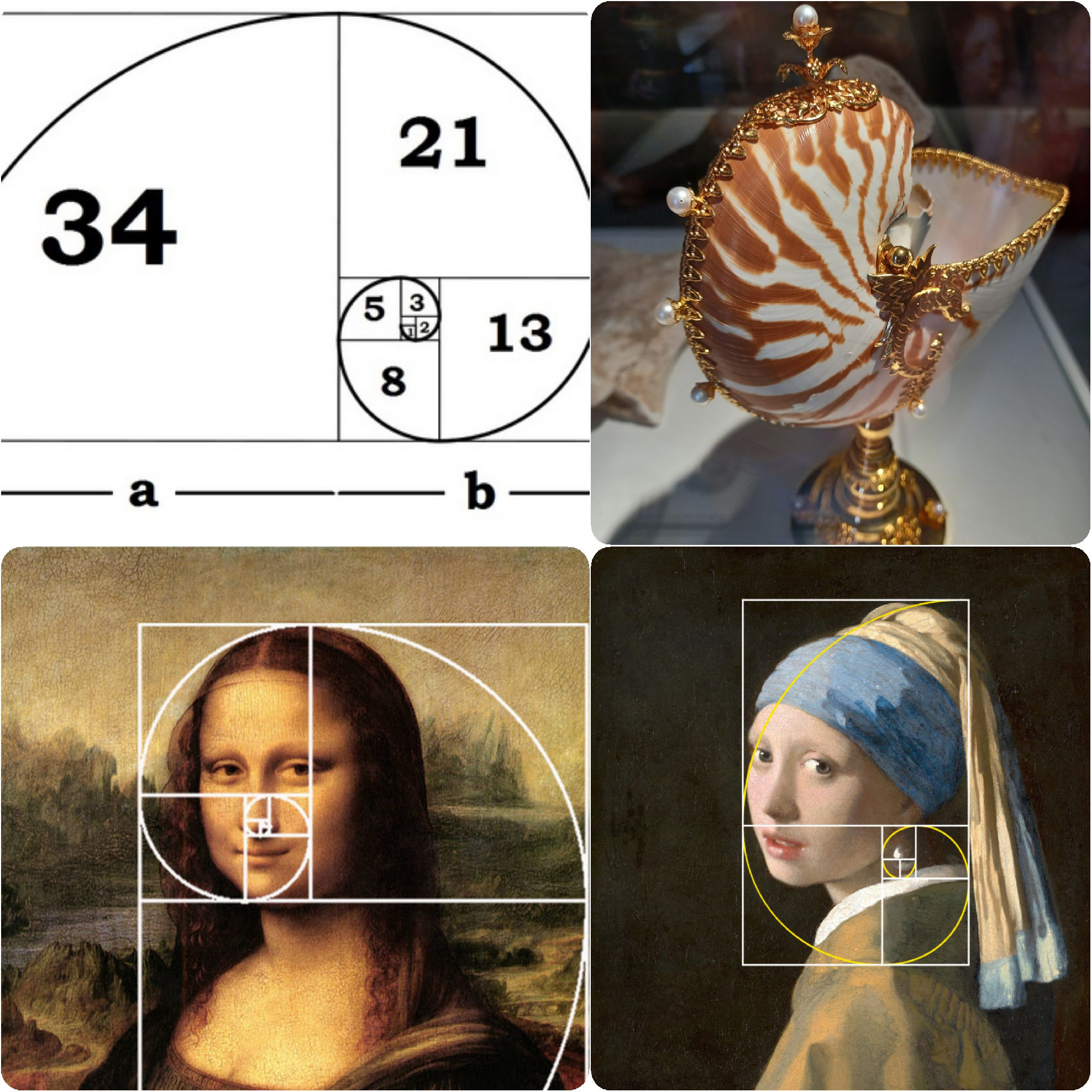 A tengeri csigaházak rendszerint olyan szépek, hogy szinte valamennyi kiérdemli a valódi műalkotás rangját. (Igazi művészi arzenál ez, melyben e törékeny csigaházak a tengerek „töltényei”.) Ám legszebb és legérdekesebb csigaháza különös módon a Nautilusz nevű tengeri csigáspolipnak van. E viszonylag nagy méretű, tigriscsíkos (vagy hófehér) szépséget a híres kínai porcelánokkal érdemes összemérni. Ám a középkori Európa ötvösművészeit is megihlette: egy aranyserlegbe integrált Nautilusz bármikor megtekinthető a Szépművészeti Múzeumban. Mivel belül sem kevésbé különleges, a gyűjtők félbe vágva is szívesen vásárolják. Tele van aprócska légkamrákkal: a csigáspolip az ezekben tárolt levegőt kipréselve siklik a tengervízben. S míg más polipok rendszerint azzal vannak elfoglalva, hogy minél jobban beleolvadjanak környezetükbe, addig ez a kis szörnyeteg – aki valójában egy fokkal sem szebb az Alien-filmekből ismerős fejlábú zigótáknál – úgy hivalkodik csodás tengeri szerkentyűjével, mint egy Ferrarival. Ráadásul: az aranymetszés szabályait minden jel szerint e „Ferrari” alapján definiálták a tökéletes szépség titkait kutató ógörög filozófusok. Az aranymetszés lényege a mellékelt ábrán latható matematikai arányokban rejlik: a spirális csigaházban minden nagyobb növekedési „kamra” arányszáma megegyezik a két előtte lévő kisebb kamrában látható számmal. Mivel a két legkisebb kamra: 1 és 2, így a 3. kamra arányszáma a kettő összege 1+2 = 3! Az 5. kamra arányszáma pedig (1+2) + 3 = 5. Így jutunk el a Nautilusz belső terének „felét” jelző 34-ig, amelynek arányszáma pontosan megegyezik az előtte lévő két kamra számaival: 21+13=34! Számos ókori, reneszánsz és későbbi remekmű készült az aranymetszés szigorú szabályai szerint, köztük a két leghíresebb női portré: a Mona Lisa és Vermeer van Delft későbbi Leány gyöngy fülbevalóval/Turbános hölgy című képe.