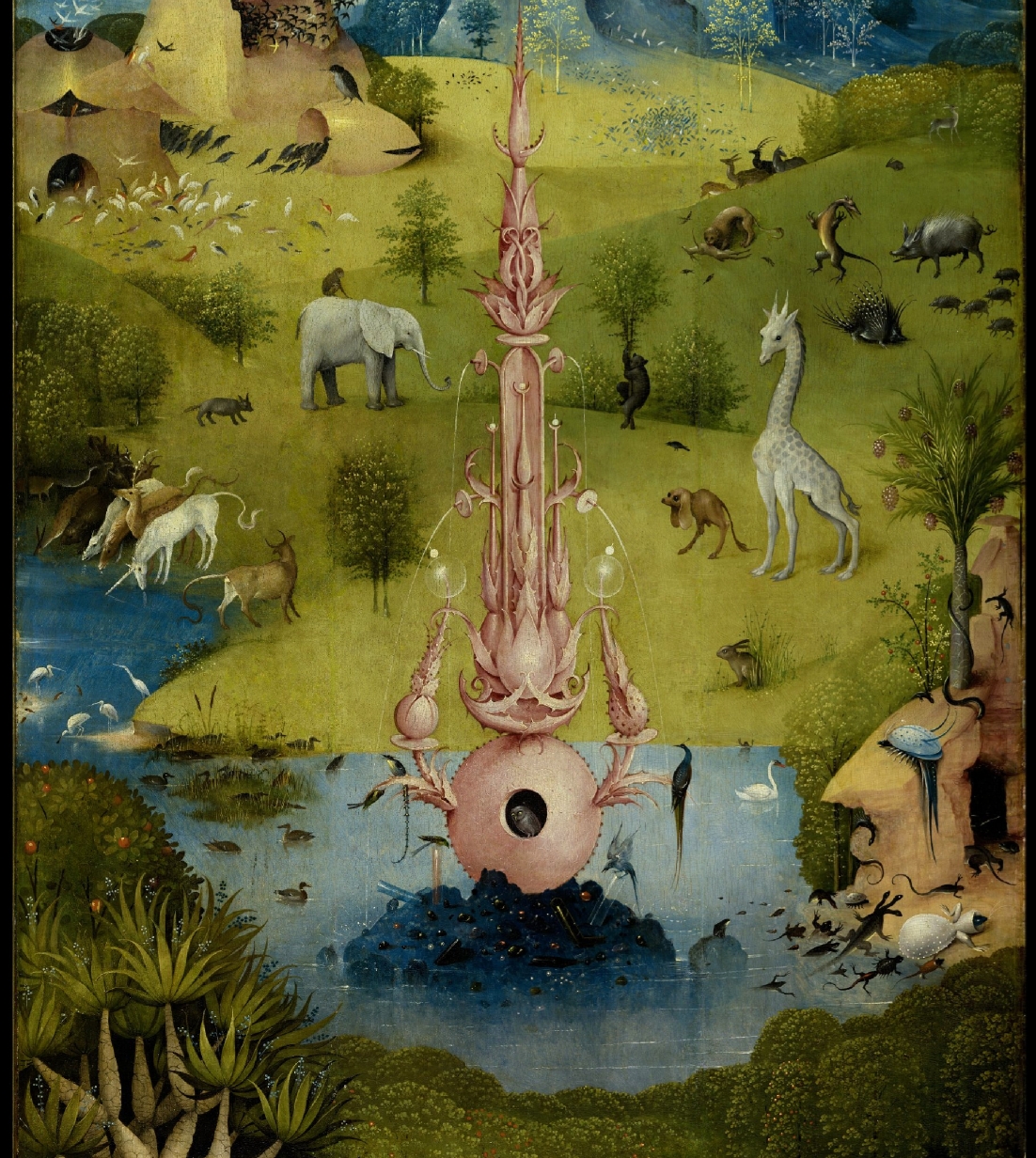 Nehéz lenne a barcelonai Csontok Házánál organikusabb és bizarrabb építészeti alkotást elképzelni. Ám ötszáz évvel korábban mintha mégis sikerült volna valakinek… egy különc festőzseninek… akit kivételesen nem Leonardónak hívtak, hanem Hieronymus Boschnak. Gondoljunk csak az Élet kútjára az Édenkertből! E rákpáncélból, rákollókból és egyéb tengeri csápokból kreált szürreális konstrukcióra, közvetlenül a Teremtő Jahve/Jézus fölött-mögött. A festészet történetének e legmerészebb képe ötszáz évvel előzte meg az organikus építészetet és a szürrealizmust! Sőt: csak a legnagyobbakhoz mérhető művészi intuíciója révén ötszáz évvel előzte meg a darwinizmust a tengervízből a szárazföldre kilépő legelső lábas állatokkal.