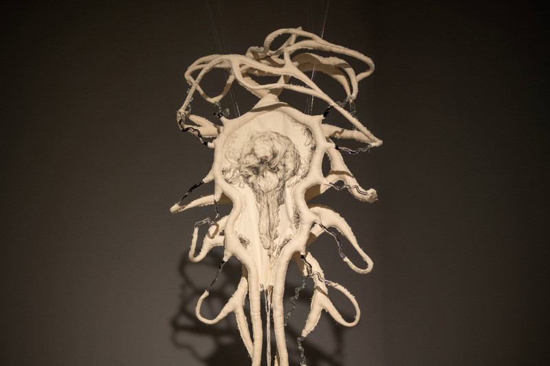 „A kiállítás azt a kortárs nyugtalanságot térképezi fel, amelyben valóságérzékelésünk megbillen, és a rejtett, láthatatlan erők érzékeltetése válik meghatározóvá. A szembenézés az ismeretlennel itt nem félelmet, hanem egyfajta különös nyugalmat hív elő – annak felismerését, hogy az ismeretlenbe való alámerülés teljesen új érzékelés és tapasztalás lehetőségét hordozza” – emelte ki Máté Zsófia, a kiállítás társkurátora.