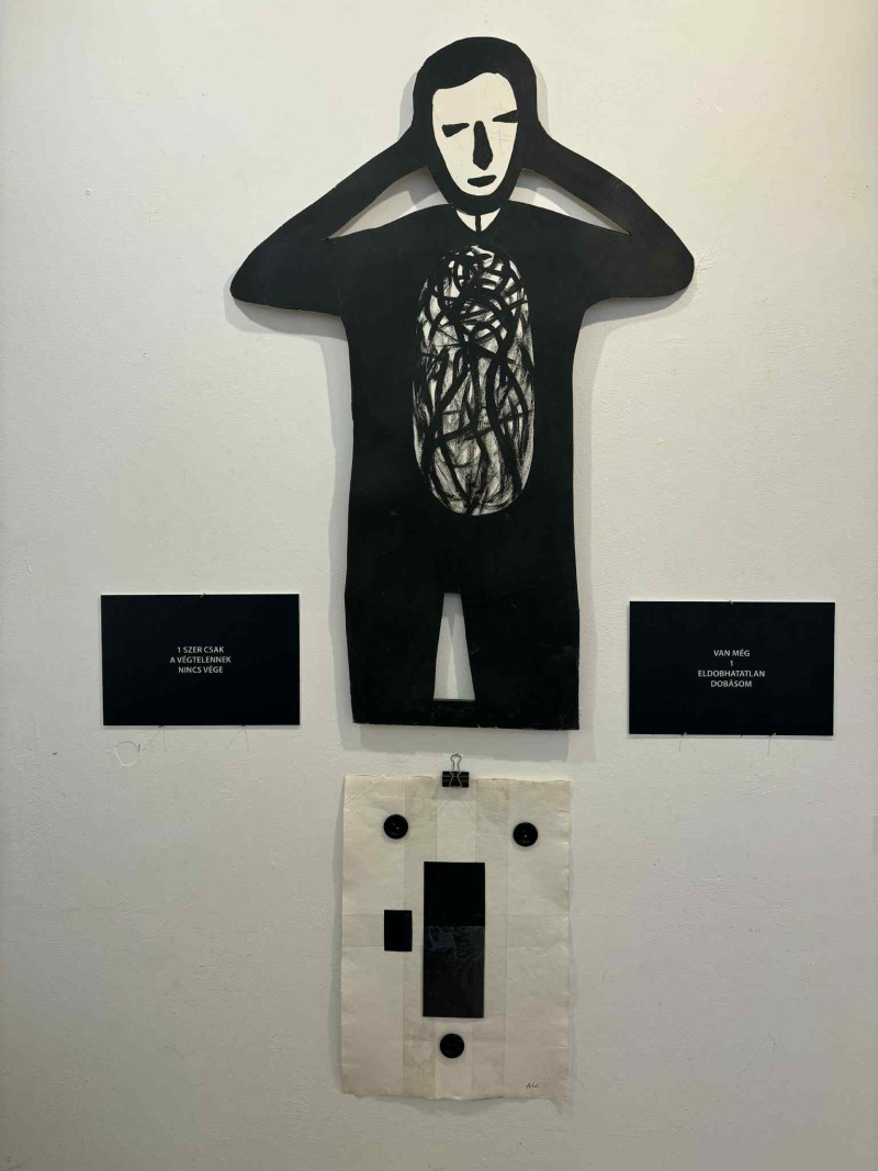 Izgalmas anyagot láthatunk ismét feLugossy Lászlótól, és ez nem meglepő. Annál meghökkentőbb nyers, ösztönös képi világa, korlátozott színhasználata és a furcsa anyagok felhasználása művein, amelyekre ugyanakkor a jól átgondolt kompozíció és szerkezet is jellemző. Ettől egyediek, mindenki mástól megkülönböztethetők alkotásai.
