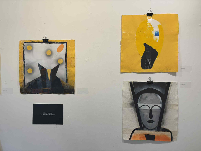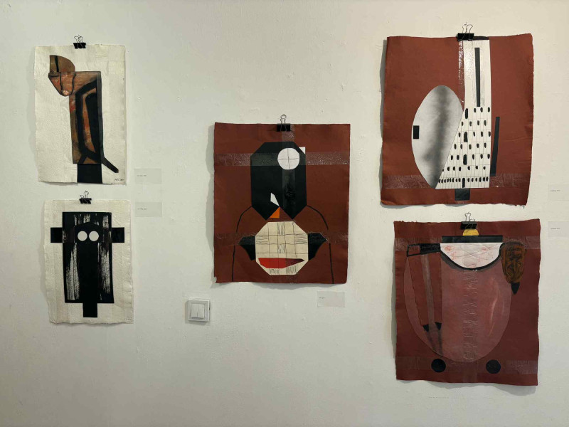 A Karöltve (2015) képének szorosan összeillesztett alakzatai: egy tornyos házra, felhőkarcolóra emlékeztető épület számos nyílással, valamint egy zárt, ovális test. Talán egy férfi és egy nő párosa. A Kismadár nagyban (2022) fekete-fehér madara egyszerű vonalakból, a két szín kontrasztjából alkot geometrikus konstruktív kompozíciót, amint a Geometrikus vad (2022) kollázsán egy kulcsot és egy széles szájú, apró szemű lényt láthatunk.
