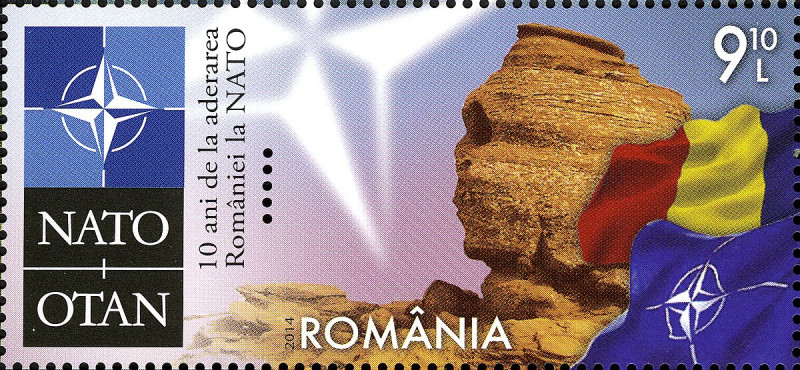A román NATO-csatlakozás tizedik évfordulójára kibocsátott bélyeg