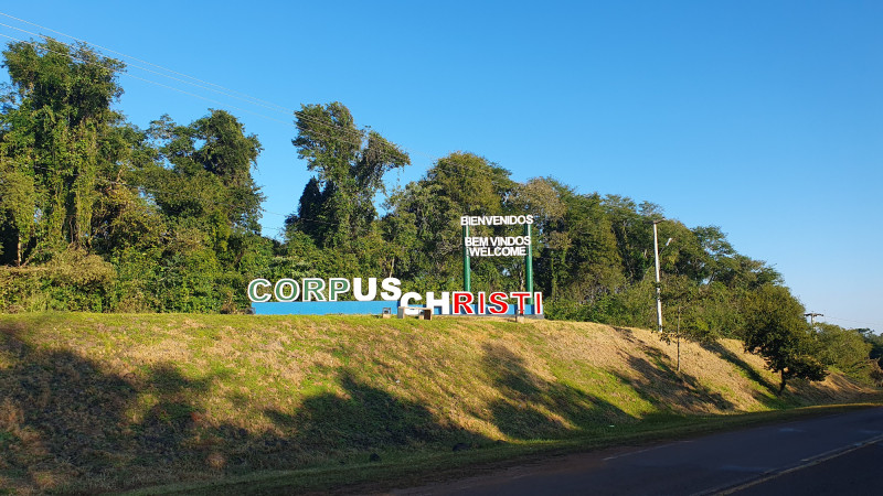 Misiones tartományban, Corpus Christi településen járunk, Argentína északi részén. Ez már az esőerdők vidéke. Feltűnő a föld vörös színe. Itt csak egyetlen éjszakát töltünk, de már olyan a klíma, hogy este meg lehet mártózni a szabadtéri medencében is a szomszédos Gobernator Roca településen, a szálláson, ha valaki elég bátor. (A helyiek nem teszik, nekik most tél van, bátor tettemet le is fotózták.)