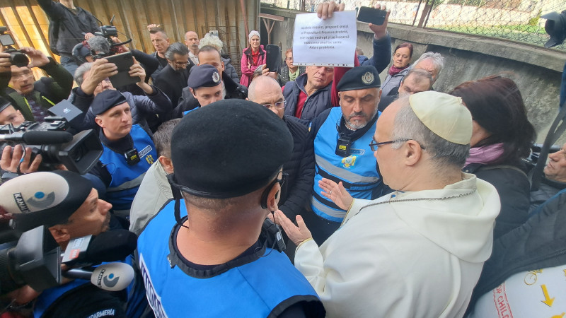 – mondta Anzelm apát, a sekrestye pedig püspöki megerősítéssel igazoltan is a templom szerves részét képezi, így elvétele a Btk.-ba ütközik, és egyházi tevékenység akadályoztatásának minősül. Utóbbiban még a miseruhák lefényképezése is megtörtént. Az épületben aztán újra hangoskodás volt az önkormányzat ingatlanügyi osztályának képviselője és Varga Andrea között, mert utóbbi a telekkönyvek hamisítására hivatkozott, és a premontrei rendet tartja jogos tulajdonosnak, amivel Cristian Popescu nem értett egyet.