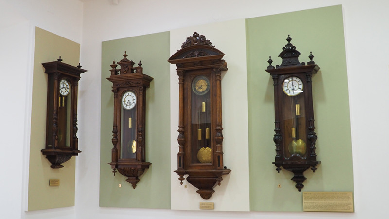 A tér nem zsúfolt, inkább kimért, elegáns. A fények jól irányítottak, a vitrinekben elhelyezett órák is jó megvilágítást kapnak. A kiállítás rendezői láthatóan értik az anyag nyelvét. A két nagy méretű toronyóra-szerkezetnél a nyers mechanika kerül előtérbe, amelyek egykor templomtornyokból mutatták az idő múlását. A kisebb, polgári órák vitrinsorában viszont a részlet finomsága dominál: aranyozott mutatók, gravírozott számlapok, apró gyártói jelzések, amelyek mögött kézművesműhelyek és családi tradíciók húzódnak meg.