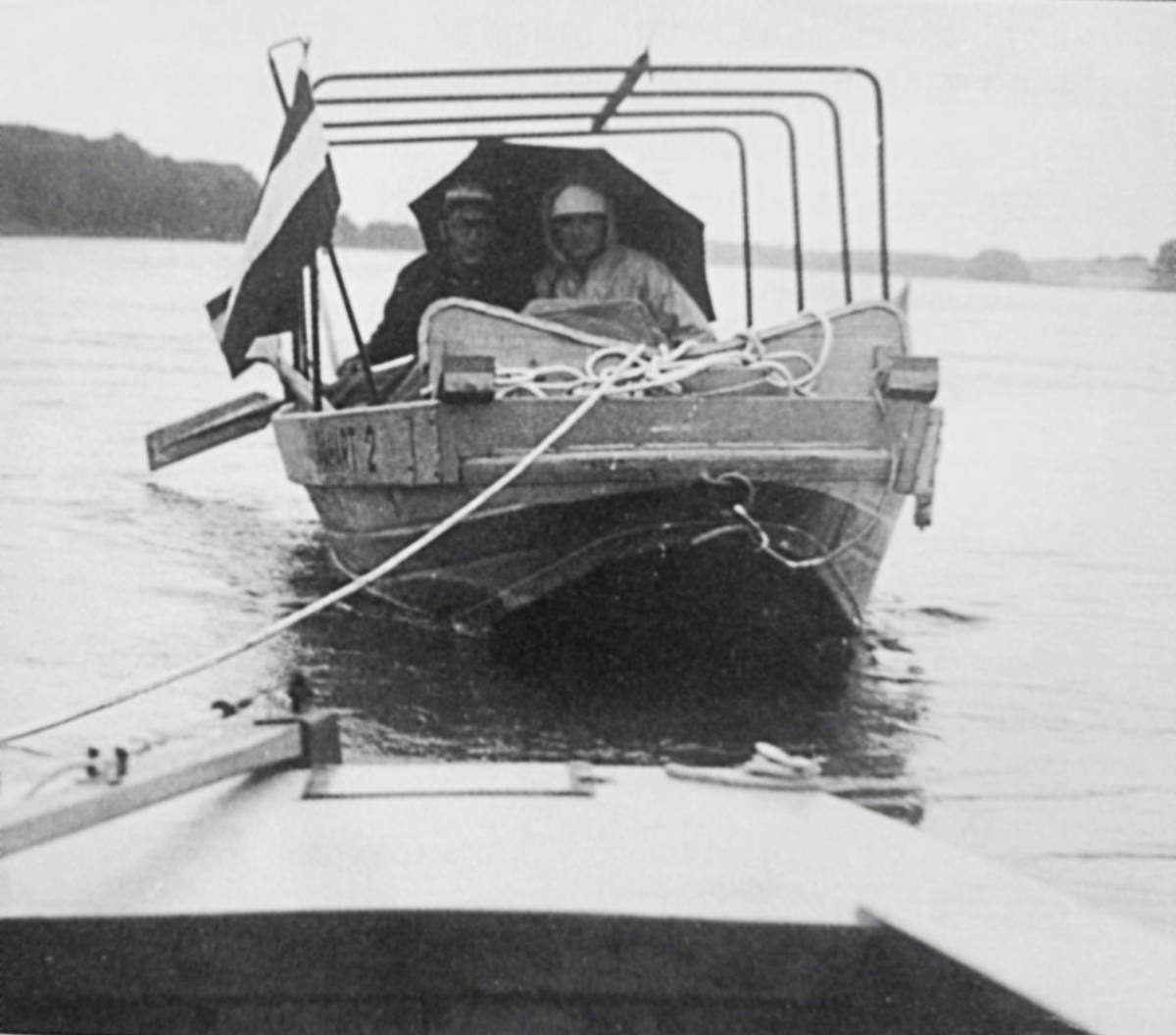 Aztán elindult a kis expedíció, hol csorogva, hol vitorlázva a folyón, fedélzetén Bedő Istvánnal és Andrással, a Sráccal, míg a motorcsónakban a Pucknak becézett Horváth György és a könyvben Tanárként említett Somorjai László foglaltak helyet. Az expedíciót Doki, vagyis dr. Torma Sándor Skodáján követte és segítette Budapestig.