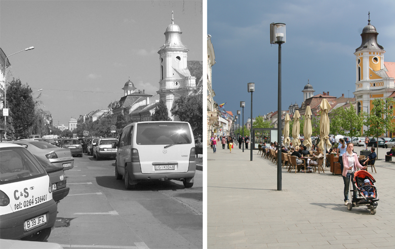 A kolozsvári Bulevardul Eroilor/Deák Ferenc utca: rehabilitáció előtt és után