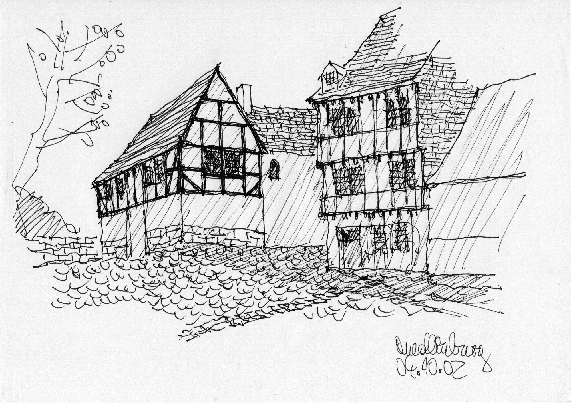 Quedlinburg házai. Brenner János rajzfüzetéből