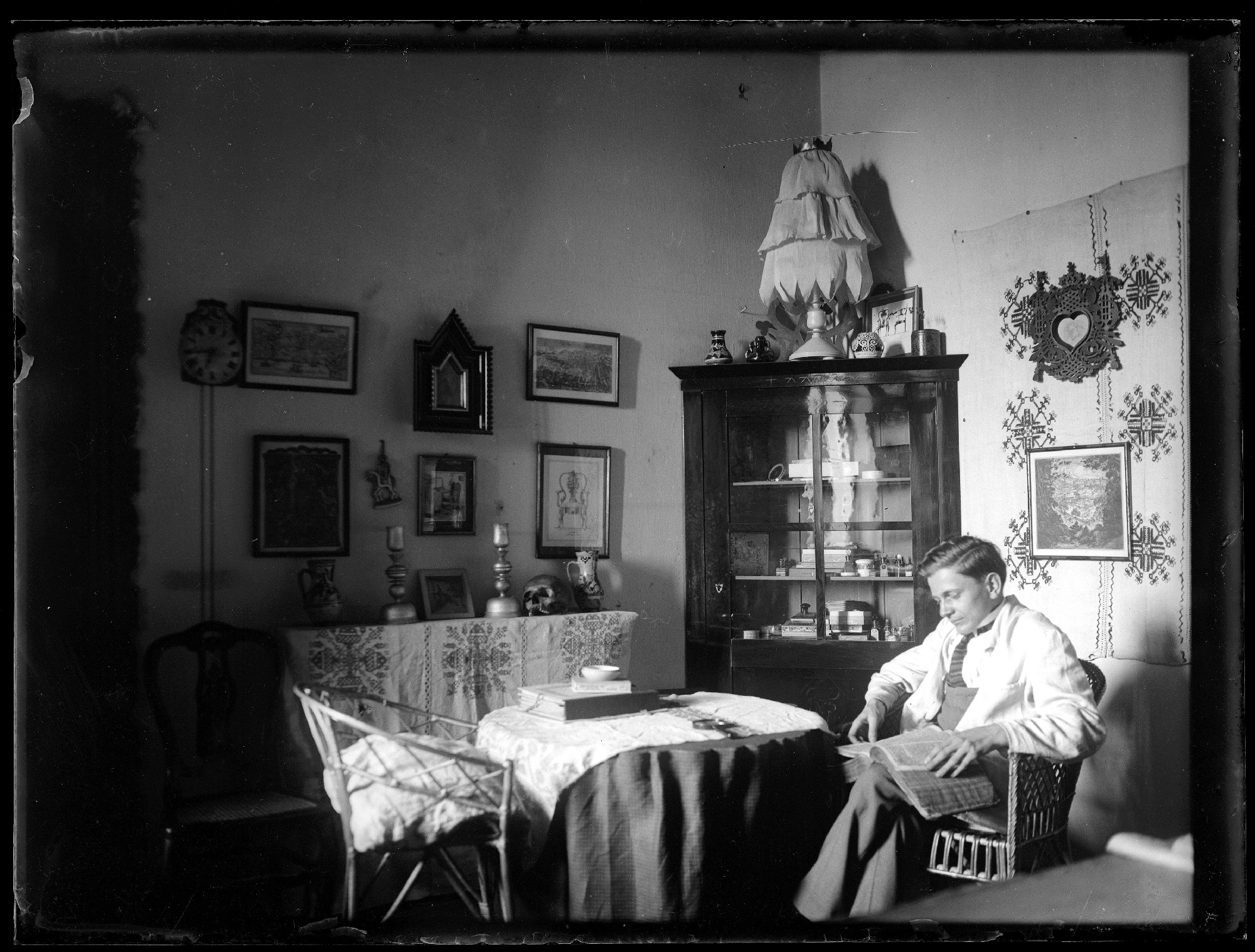Kaesz Gyula az Iparművészeti Múzeum és Iskola szolgálati lakásában, 1920-as évek