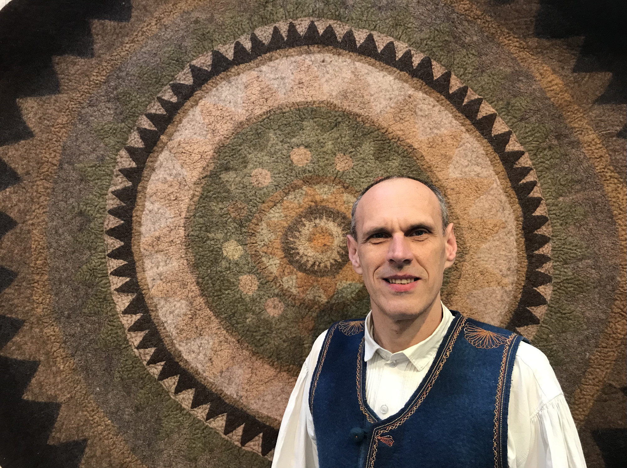 Kezdjük Vidák Istvánnal, a Magyar Művészeti Akadémia állandó tagjával. Pályája során számos egyéni és csoportos kiállításon vett részt határainkon innen és túl. Több tucat könyvet írt a magyar kézművességről és a nemezkészítésről. Kitüntetésekben is bővelkedik, hogy csak a Népművészet Mestere címet, a Király Zsiga-díjat, a kétszer is elnyert Gránátalma-díjat vagy a finn Master of Feltmaking (A nemez mestere) elismerést említsük. Erről a tárlatról sem hiányozhat az 1985-ből származó Nagy Öreg című kerek, rojtos nemeztakarója. A táltosdobok mintái elvezetnek a kereszténység előtti magyar ősvalláshoz, mindazonáltal kirajzolódik rajta egy stilizált életfa is. Ezen kívül látható még négy növényi festett nemez, melyeket alkotója a nemrég megismert, 250 éves bolgár daraboknál alkalmazott technika alapján készített.