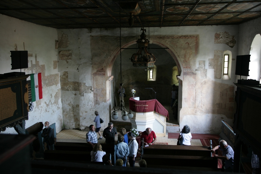 az eső áztatta vakolat pergése folytán előkerült középkori falképek hívták fel a műemlékvédelmi szakma figyelmét megóvásának fontosságára.