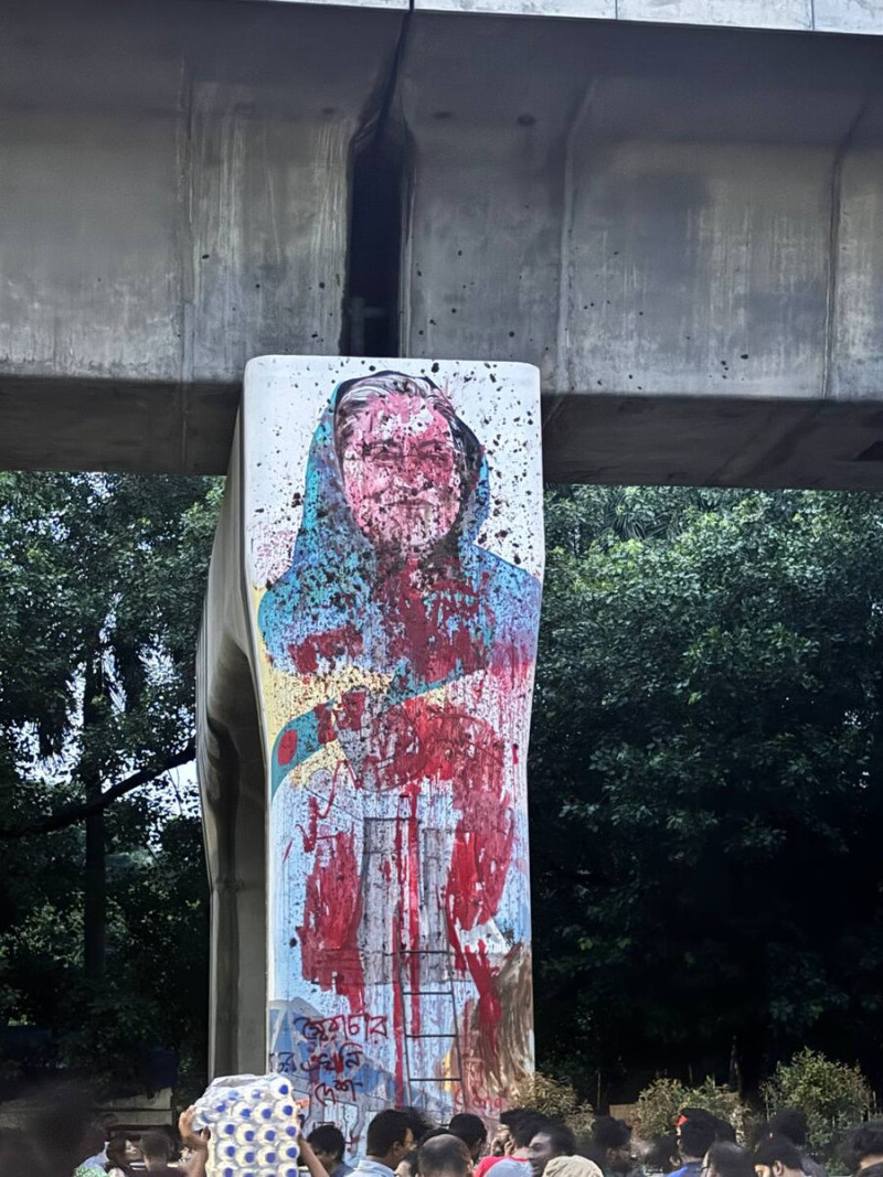 The portrait of Sheikh Hasina at Dhaka University smeared in red paint in August this year