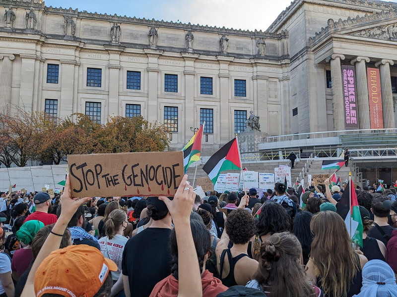 „Megálljt a népirtásnak” – palesztinpárti tüntetés New Yorkban 2023. október 28-án (fotó: Ishmael Daro from New York, CC BY 2.0/Wikimédia)