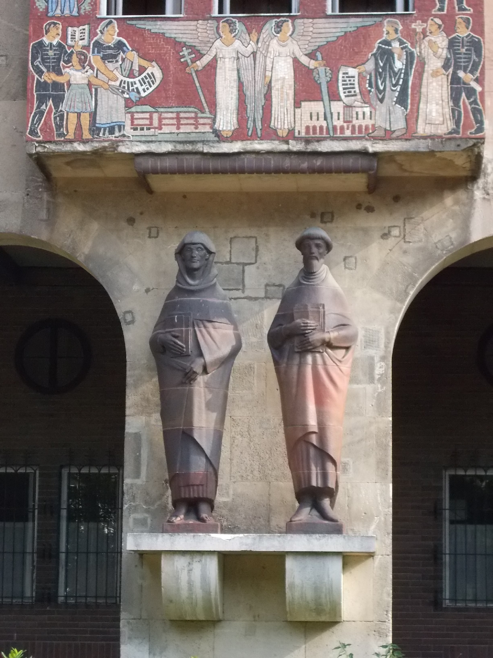 Kézai Simon (balra) és Kálti Márk szobra Székesfehárváron (Wikipédia)