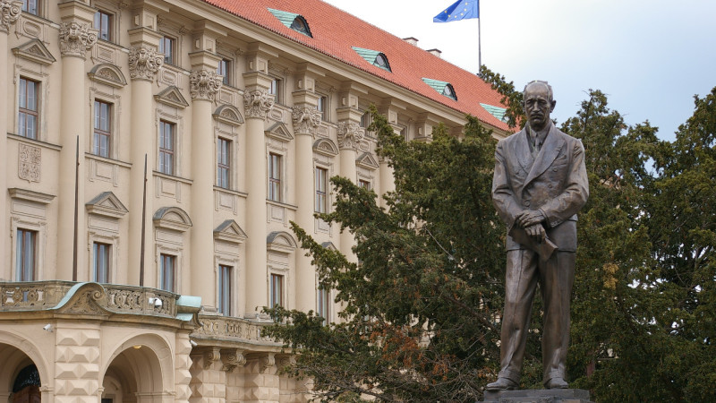 Edvard Beneš szobra a prágai külügyminisztérium előtt (forrás: Marek Kiersnowski, CC BY-SA 3.0, Wikimedia Commons)