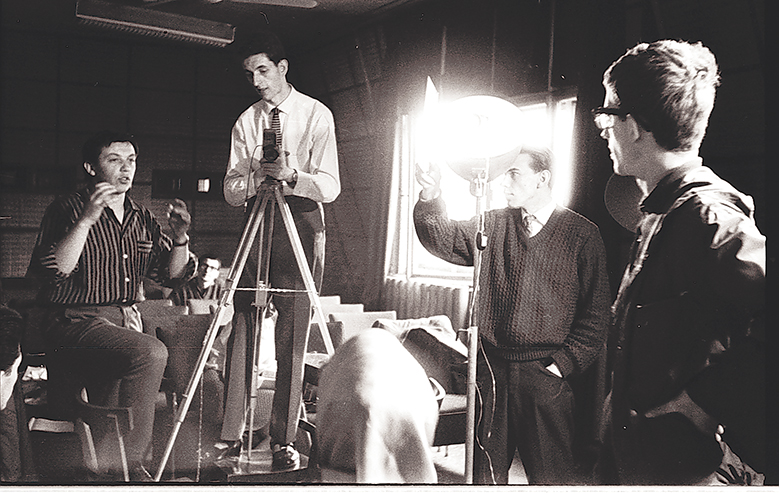 Amatőrfilm-forgatás. Balról Dékány István, Tolnai Gábor, háttal Gulyás Gyula (Képforrás: Dékány István archívumából/engedélyével)