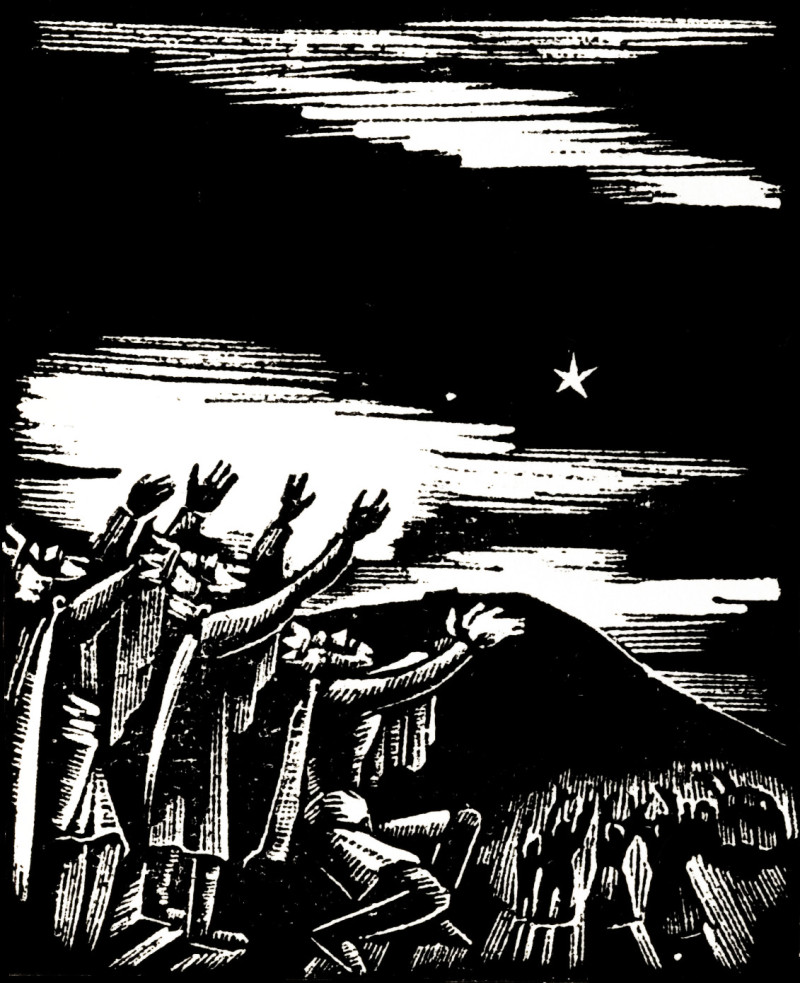 Buday György metszete az Advent 1935-ös kiadásához (a Piarista Levéltár engedélyével)