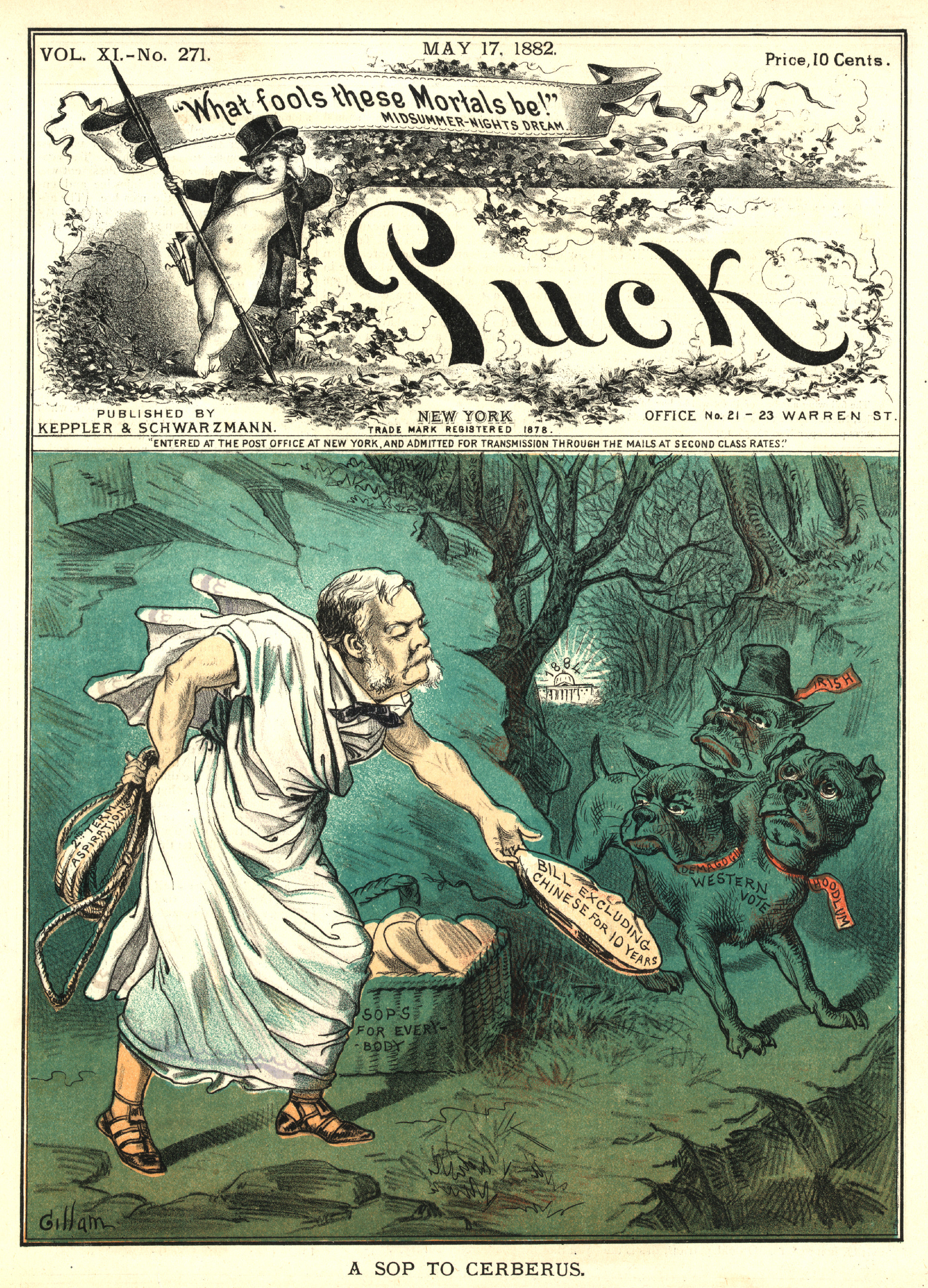 Bernhard Gillam karikatúrája Chester A. Arthur elnökről 1882-ben a Puck-ban (Library of Congress)
