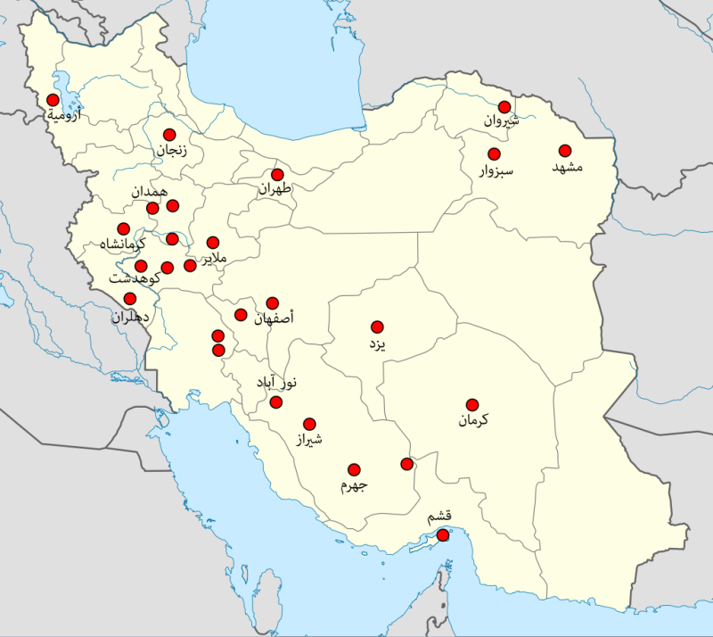 Tüntetések helyszínei a térképen (forrás: Mohammed Qays, CC BY-SA/Wikimédia)