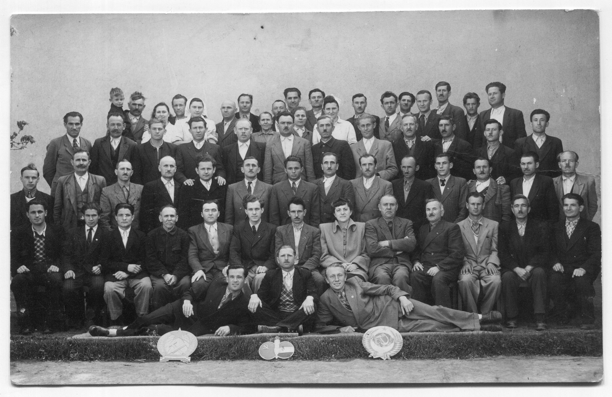 Halászmesterképző, 1953 (az ülő sorban jobbról az ötödik Fekete István, mellette Sebők Jánosné, Bíró József (?), Smuta Kálmán oktatók, a legfelső sorban balra idősebb Molnár András, ölében ifjabb Molnár Andrással)