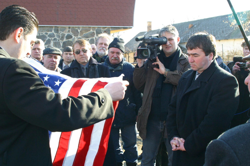 A washingtoni kongresszusi meghallgatás előtt amerikai lobogót kapott mindkét határfalu polgármestere 2004. március 8-án