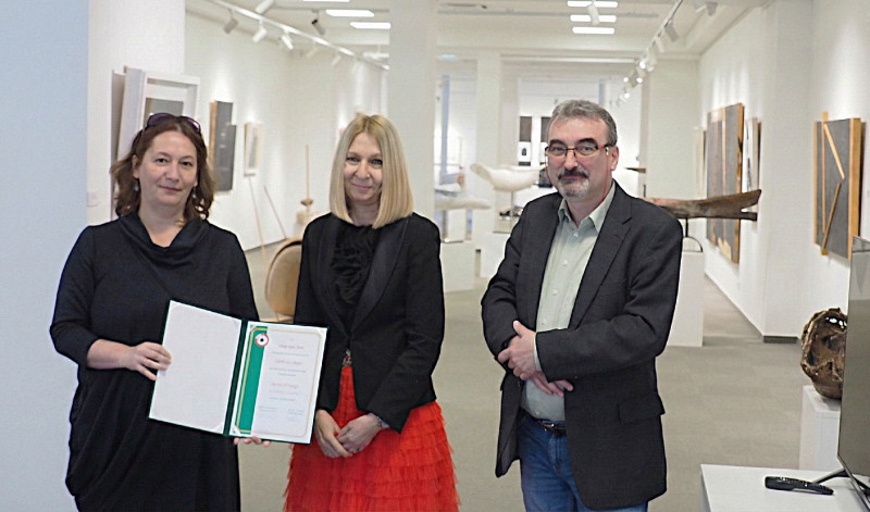 Erős Kinga, a Magyar Írószövetség elnöke a két alapítóval