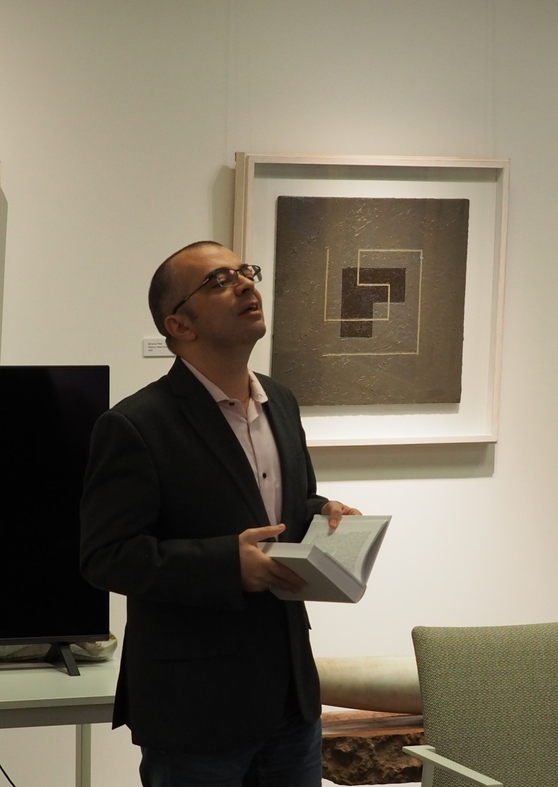 Lőrincz P. Gabriella folyóként hömpölygő versei a békéről és az Istenről meditatív áhítatot teremtettek a galéria terében