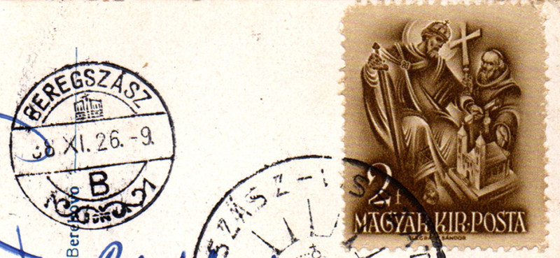 Huszonnégy nappal a visszacsatolás után, a Magyar Királyi Posta bélyegével: Beregszász, 1938. november 26.