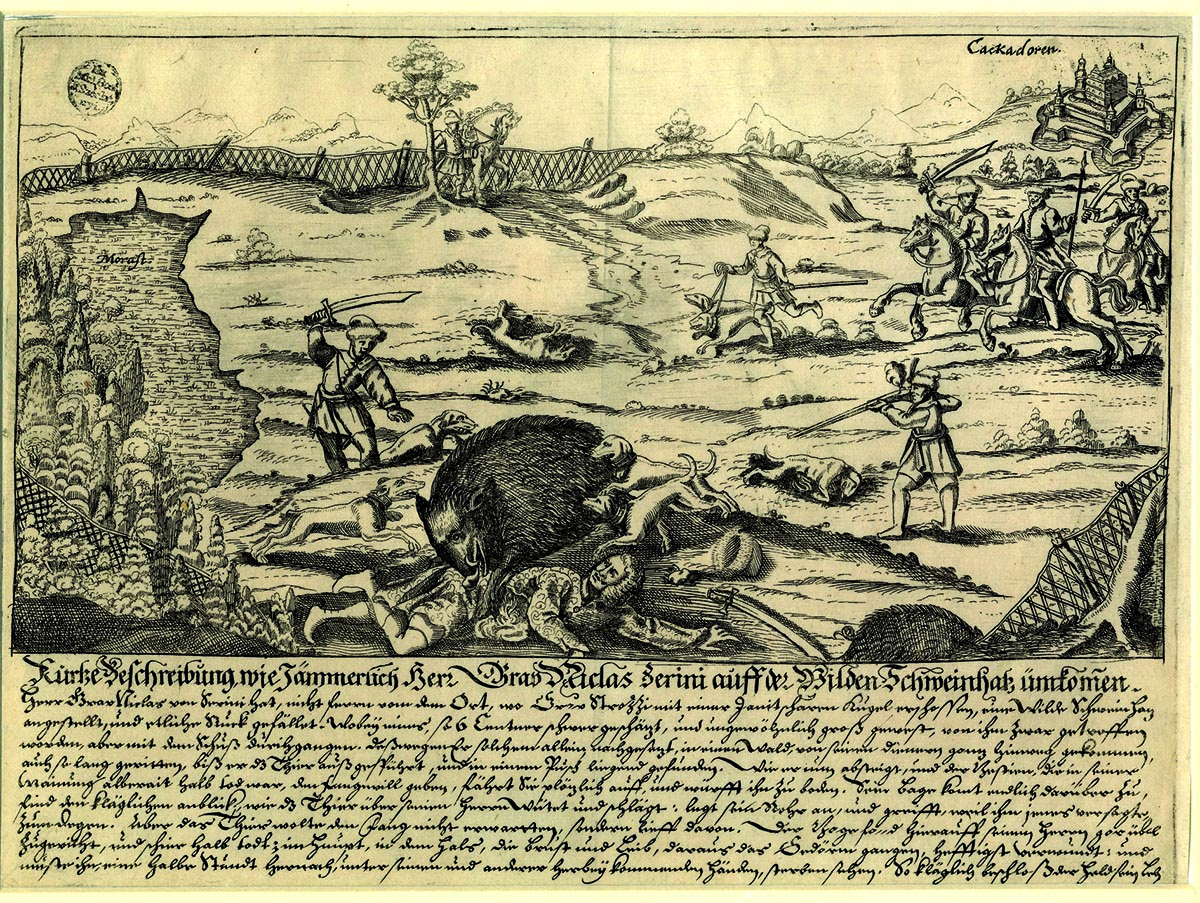 9. Zrínyi Miklós vadászbalesete, ismeretlen német mester 1664-es rézkarca