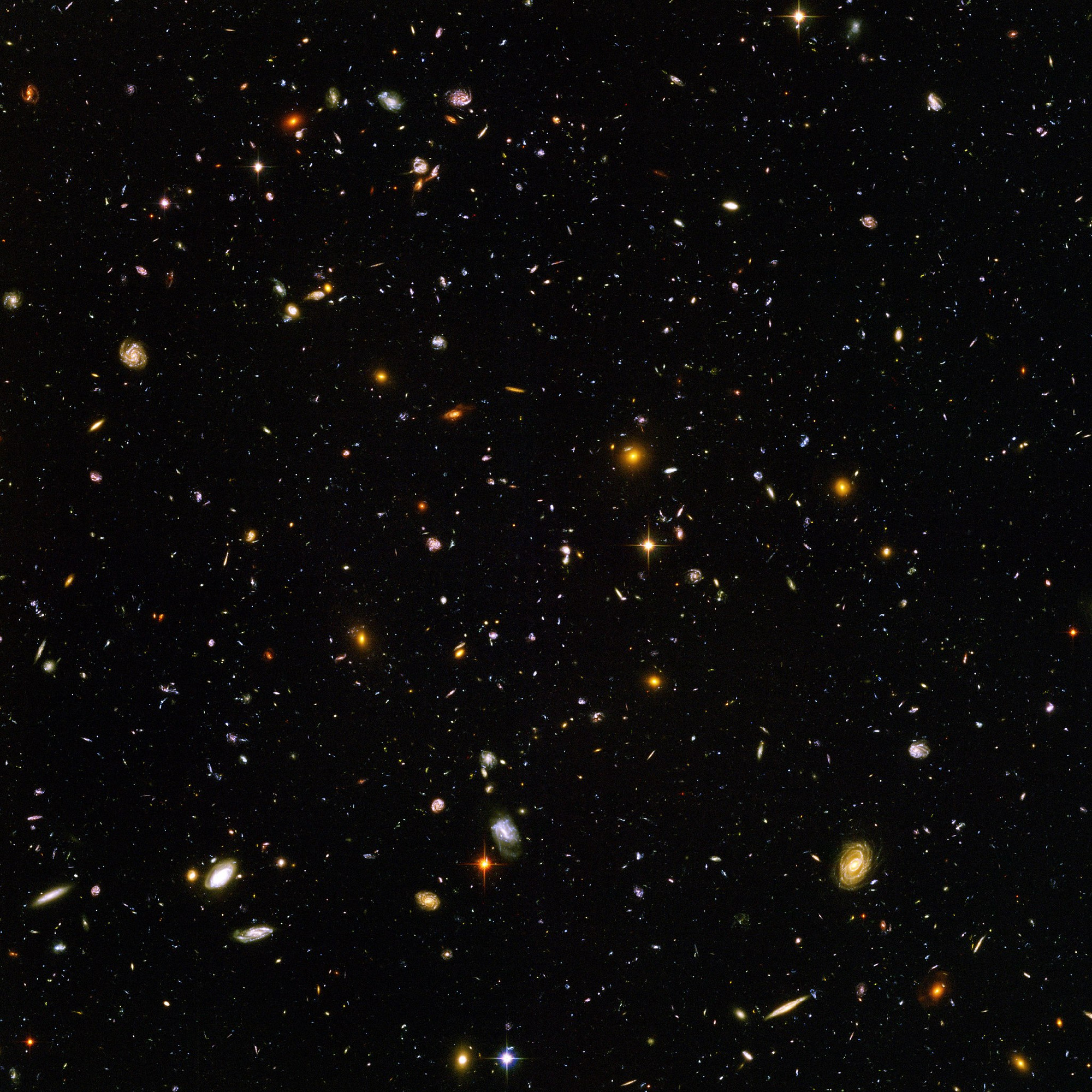 A Hubble ultramélyvizsgálati képe. A felvételen csak néhány előtércsillag látszik, az összes forrás pedig távoli galaxis (NASA, ESA, S. Beckwith [STScI])