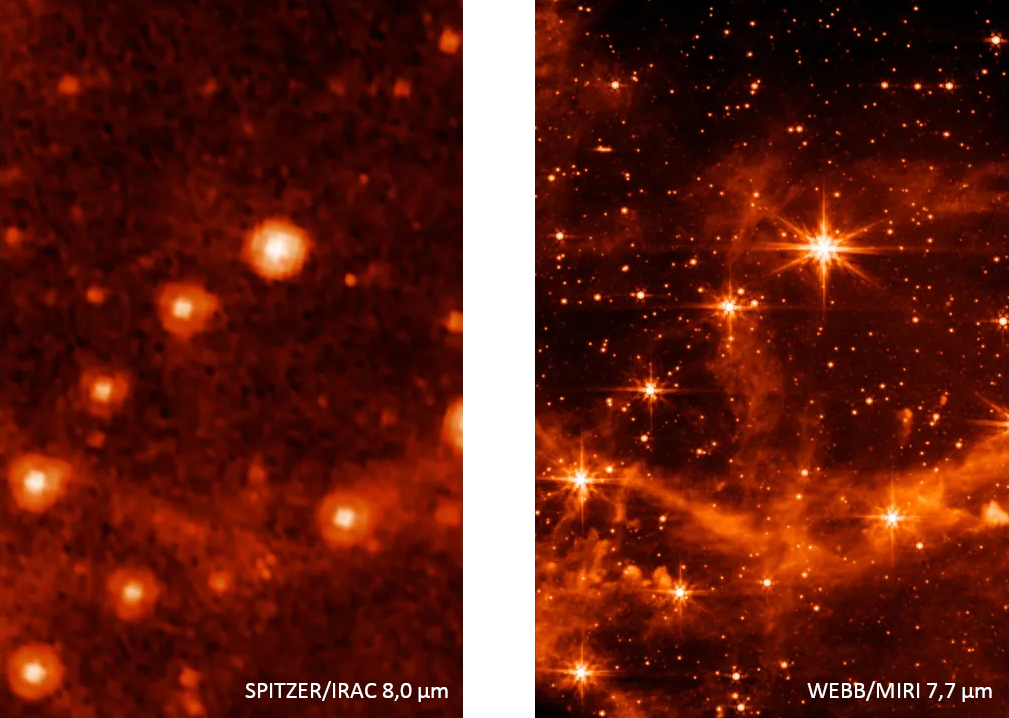 A Webb főtükre a legnagyobb, amelyet eddig a világűrbe küldtek, a méret azonban mit sem érne megfelelő műszerek nélkül. Az űrtávcsőnek négy infravörös detektora van, amelyekkel képet lehet alkotni, illetve színképeket lehet előállítani és rögzíteni. Az infravörös tartományban végzett vizsgálatok alapvető fontosságúak, mivel minden alacsony hőmérsékletű objektum ebben a tartományban sugároz a legintenzívebben. Sok érdekes dolog pedig ott történik, ahol vagy magas, vagy éppen alacsony a hőmérséklet. Utóbbi kategóriába tartozik például a csillagkeletkezés. A csillagok hatalmas molekulafelhők gáz- és poranyagából jönnek létre. Sajnos az optikai tartományban, ahol az emberi szem is lát, és a földi távcsöveink nagy része is működik, a por a sugárzás jelentős részét blokkolja, azaz nem látunk át rajta, a porfelhők elrejtik előlünk az objektumokat. Az infravörös tartományban azonban már nem számottevő a por elnyelésének mértéke, így bepillanthatunk az izgalmas helyekre, és remélhetőleg még többet megtudhatunk a csillagkeletkezés bonyolult folyamatáról. Ugyanezt várjuk a Naprendszeren kívüli bolygók esetében is. A Webb képes lesz arra, hogy az infravörös tartományban közvetlenül is lefényképezzen exobolygókat, de részleteiben vizsgálhatja azok légkörét, ezen keresztül pedig akár az időjárásukat is. Ha egy exobolygó keringése során (tőlünk nézve) elhalad a csillaga előtt, akkor a csillag hozzánk érkező sugárzása áthalad a légkörén (ha van neki), ez pedig nyomot hagy a fényen, amelynek színképi elemzésével kideríthető a bolygólégkör kémiai összetétele, de a hőmérséklet-eloszlásáról és az áramlási viszonyairól is szerezhetünk így információt. A Tejútrendszer középpontjában is érdekes dolgok rejtőznek a porfüggöny mögött. Több évtizede tudjuk már, hogy a centrumban egy szupernagy tömegű fekete lyuk foglal helyet, amelynek közvetlen környezetéről rádiótávcsövek hálózatával végzett interferometriai mérések alapján már képet is alkottak, és azt néhány hete hozták nyilvánosságra.