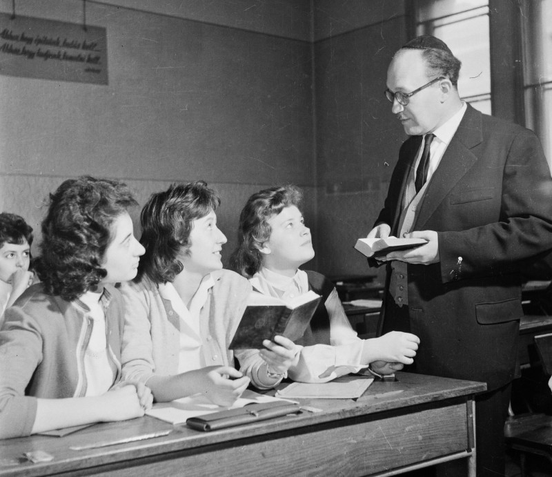 Scheiber Sándor tanít a Rabbiképző gimnáziumában 1960-ban (fotó Bauer Sándor, Fortepan)