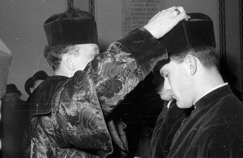 Nyitókép: Scheiber Sándor rabbi esket a Rabbiképző zsinagógájában 1969-ben (fotó: Bauer Sándor, Fortepan)