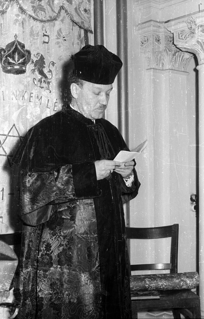 A szónok Scheiber Sándor a gyöngyösi zsidó imaház felavatásán 1964-ben (fotó: Bauer Sándor, Fortepan)